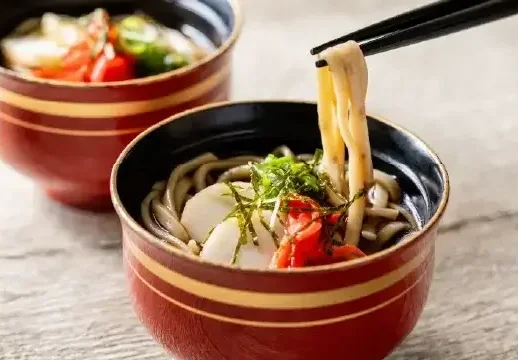 沖縄の食文化に欠かせない「沖縄そば」は、小麦粉とかん水というシンプルな材料から作られる郷土料理です。免疫力向上や美容効果が期待されるフコイダンを豊富に含む、沖縄県産のモズクを贅沢に練り込んだ生麺を使用。生麺ならではのつるりとした喉ごしと、モズクならではの風味・食感をぜひ堪能ください。