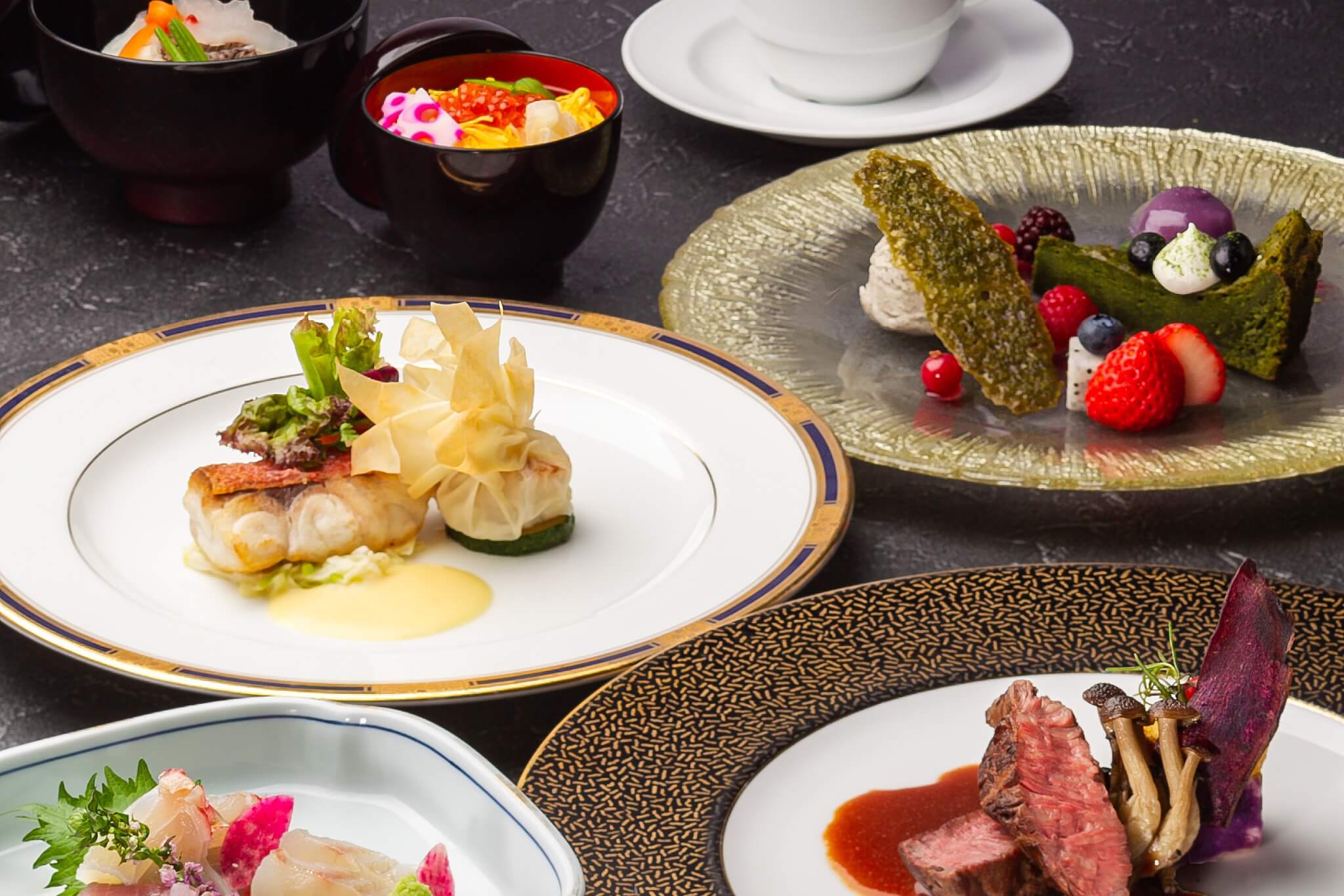 両家の新たな門出を祝福する結納・お顔合わせはこだわりのお店で華やかな料理・コースに舌鼓を打ちながら 沖縄ハーバービューホテルの結納・顔合わせプランは、お2人とご家族の特別な時間を彩ります 心を込めたおもてなしと手間を惜しまぬお料理の数々をお楽しみください
